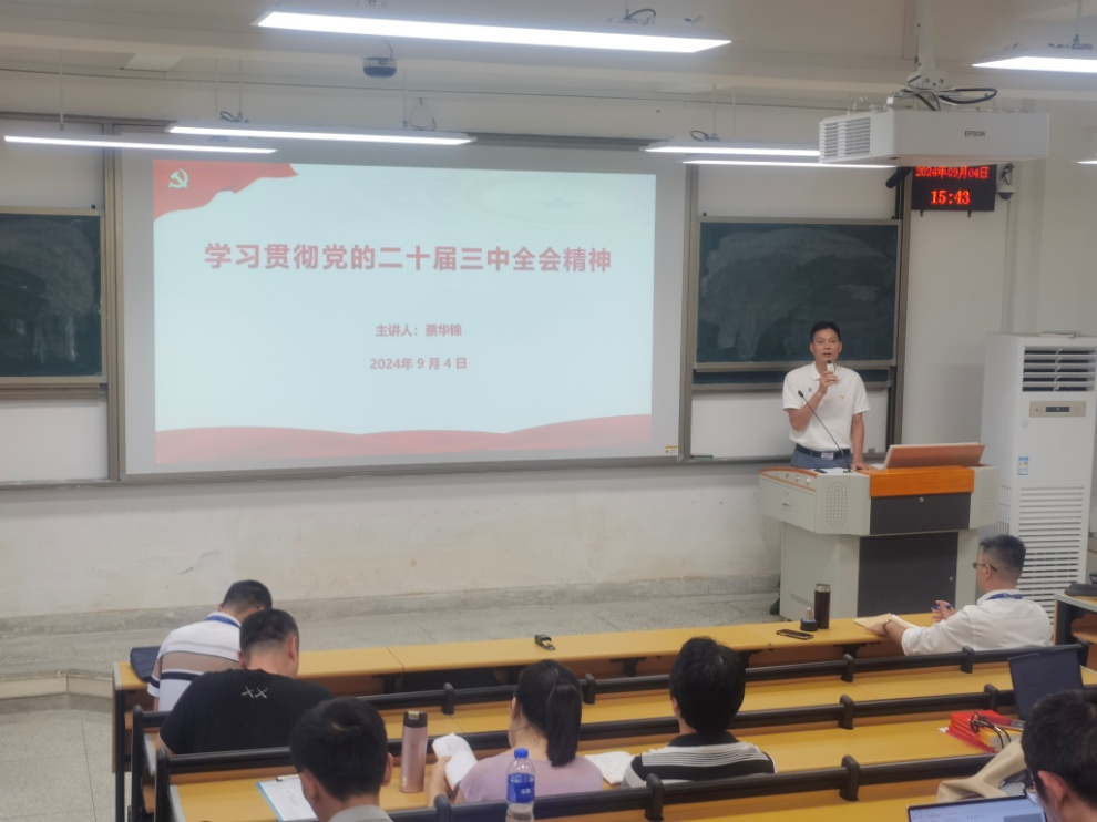 2024年9月4日,我院在22號樓汽一階梯教室開展學(xué)習(xí)貫徹黨的二十屆三中全會(huì)精神宣講報(bào)告會(huì)。學(xué)院黨總支書記蔡華錦作宣講報(bào)告,全體教職工參會(huì)。