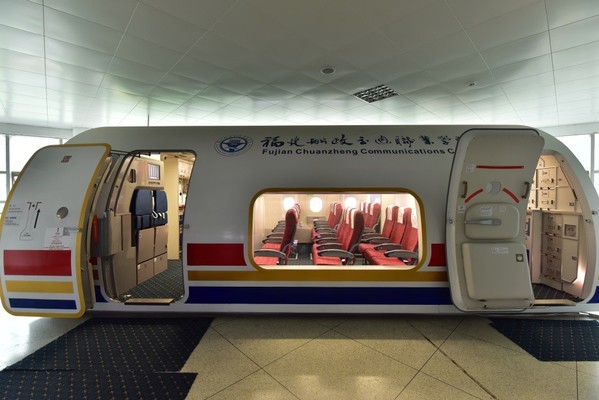從地面的值機(jī)、驗(yàn)證、安檢、登機(jī)開始,就感受到18級(jí)空中乘務(wù)的同學(xué)燦爛的笑容和專業(yè)的素質(zhì)??此茝?fù)雜的程序,在同學(xué)們熟練的操作引導(dǎo)下,“乘客們”快速有序地登上這架航班。
