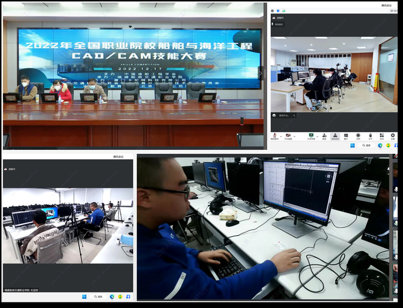 為提高專業(yè)技能水平,促進院校學生之間學習交流,由中國造船工程學會主辦,我院航海學院承辦的2022年全國職業(yè)院校船舶與海洋工程CAD/CAM 技能大賽于12月17日上午正式拉開帷幕,此次比賽共吸引13所國內(nèi)知名涉船類職業(yè)院校參賽。比賽采用線上比賽方式,通過騰訊會議平臺及www.currentcad.com(卡倫特在線平臺)進行。