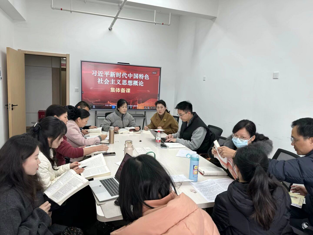 為更好地組織“習(xí)近平新時代中國特色社會主義思想概論”課程教學(xué),推動習(xí)近平新時代中國特色社會主義思想進教材、進課堂、進頭腦,推動思政課內(nèi)涵式發(fā)展,2月14日,馬克思主義學(xué)院習(xí)近平新時代中國特色社會主義思想概論教研室開展了本學(xué)期思政課教師 “優(yōu)·美”教學(xué)工作坊集體備課活動。教研活動圍繞《習(xí)近平新時代中國特色社會主義思想概論》課程導(dǎo)論及第一章開展集體備課。