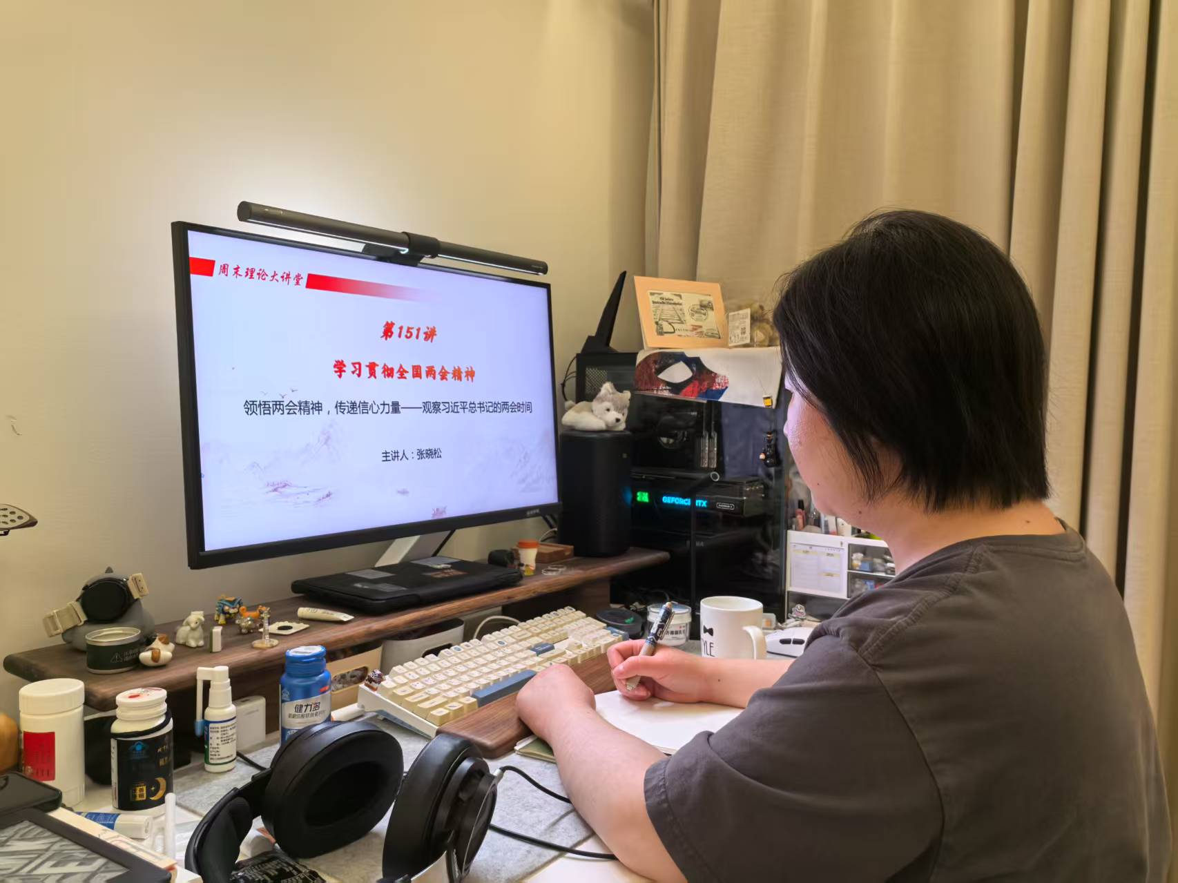 收看本次講座后,拓寬了我對(duì)兩會(huì)精神領(lǐng)悟的深度與廣度。作為高校思政教師,我愈發(fā)清晰地認(rèn)識(shí)到肩頭重任:要把兩會(huì)精神融入日常教學(xué)中,化作鮮活的育人養(yǎng)分。今后,我將堅(jiān)定不移地把國家宏偉發(fā)展目標(biāo)與思政教育緊密相連,引領(lǐng)學(xué)生洞察中國特色社會(huì)主義事業(yè)的偉大成就,深切體會(huì)黨始終不渝為人民服務(wù)的初心使命,從而筑牢理想信念根基,培育學(xué)生深厚的愛國愛黨情懷,以實(shí)際行動(dòng)踐行立德樹人的根本任務(wù)。