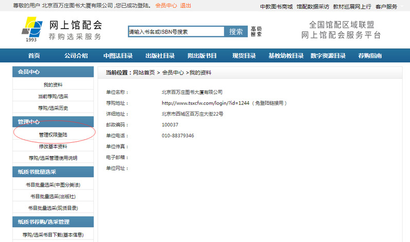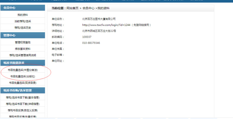 第四步:登錄以后,選書(shū)目批量選采(中圖分類(lèi))或(出版社)