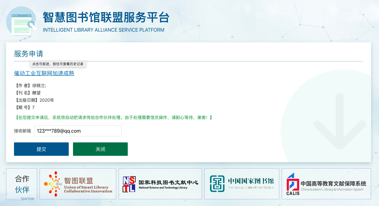 全文獲?。?/strong>圖書館館藏文獻直接定位到來源數(shù)據(jù)庫,讀者可直接下載。其他資源通過全國智慧圖書館聯(lián)盟服務平臺提供文獻保障服務,24小時內響應申請。