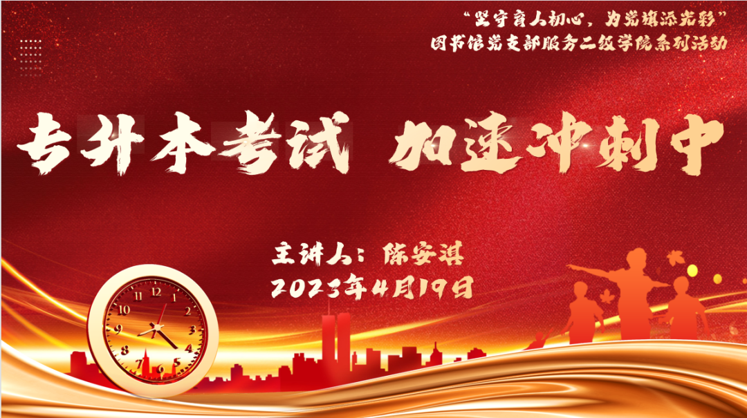 此次講座是圖書館黨支部服務(wù)二級(jí)學(xué)院活動(dòng),目的是為學(xué)生辦實(shí)事,提升就業(yè)競(jìng)爭(zhēng)力。讓同學(xué)們進(jìn)一步明確了“專升本”的目標(biāo),對(duì)準(zhǔn)備“專升本”的同學(xué)來說積極性大增,更加努力地應(yīng)對(duì)即將到來的考試,祝愿他們可以取得優(yōu)異的成績。