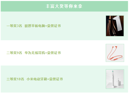 根據(jù)初賽答題總成績將選拔排名前十的組織單位入圍決賽,入圍學(xué)校中,選取成績優(yōu)異的三名學(xué)生組成校代表隊,參與最終決賽,屆時將根據(jù)答題成績進(jìn)行個人與組織單位的獎項評定。