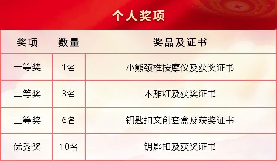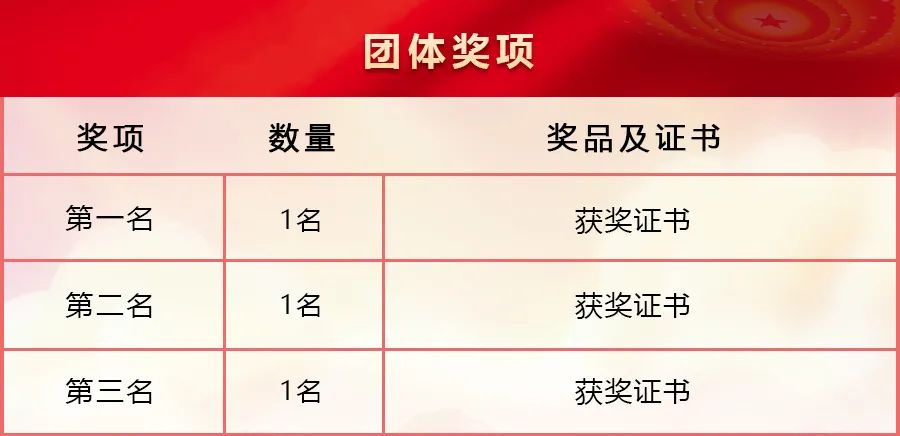 (4)團體評獎以支部為單位,按支部全體黨員(含未參賽黨員)的人均成績進行排名,評選出團體第一名、第二名、第三名。