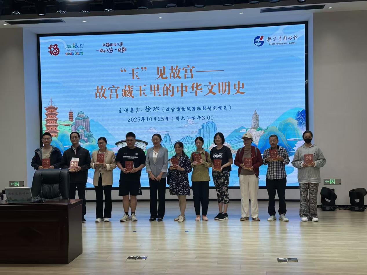 10月25日,我館文化大篷車(chē)團(tuán)隊(duì)志愿者們懷揣著對(duì)文化的熱愛(ài)走進(jìn)福建省圖書(shū)館,為“福建文旅講壇”提供讀者引導(dǎo)、現(xiàn)場(chǎng)布置、填寫(xiě)問(wèn)卷調(diào)查等志愿實(shí)踐服務(wù),并在《玉見(jiàn)故宮——故宮藏玉里的中華文明史》講座中,與這份跨越千年的文化瑰寶撞了個(gè)滿懷。