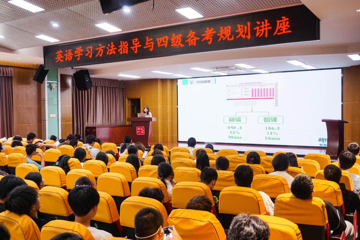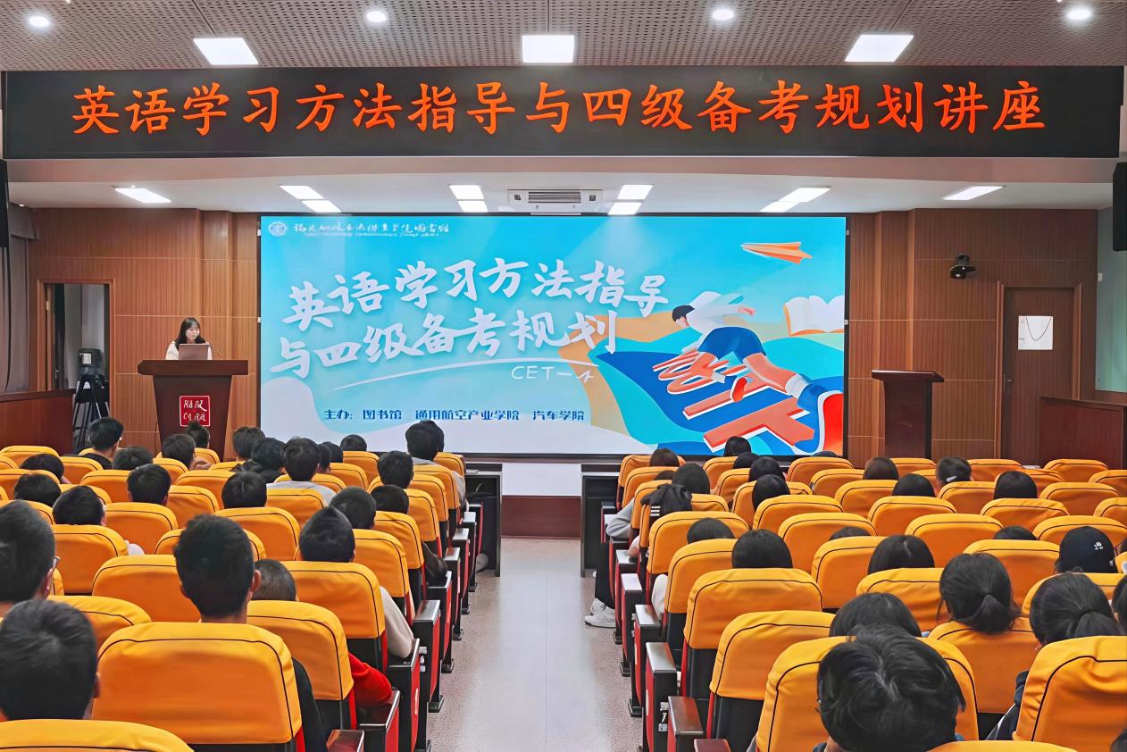 近日,圖書館聯(lián)合通用航空產(chǎn)業(yè)學院、汽車學院在1號樓學術報告廳舉辦《英語學習方法指導和四級備考規(guī)劃》專題講座,300余名大一新生現(xiàn)場聆聽,共同解鎖英語高效學習密碼。