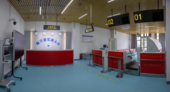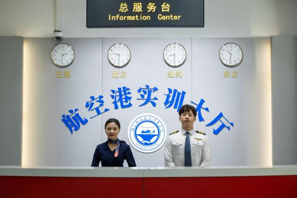 “空中乘務(wù)”實(shí)訓(xùn)中心,按照民航總局四級乘務(wù)員教學(xué)培訓(xùn)標(biāo)準(zhǔn),建設(shè)有模擬客艙、撤離平臺、機(jī)場地面服務(wù)、形體訓(xùn)練室等。