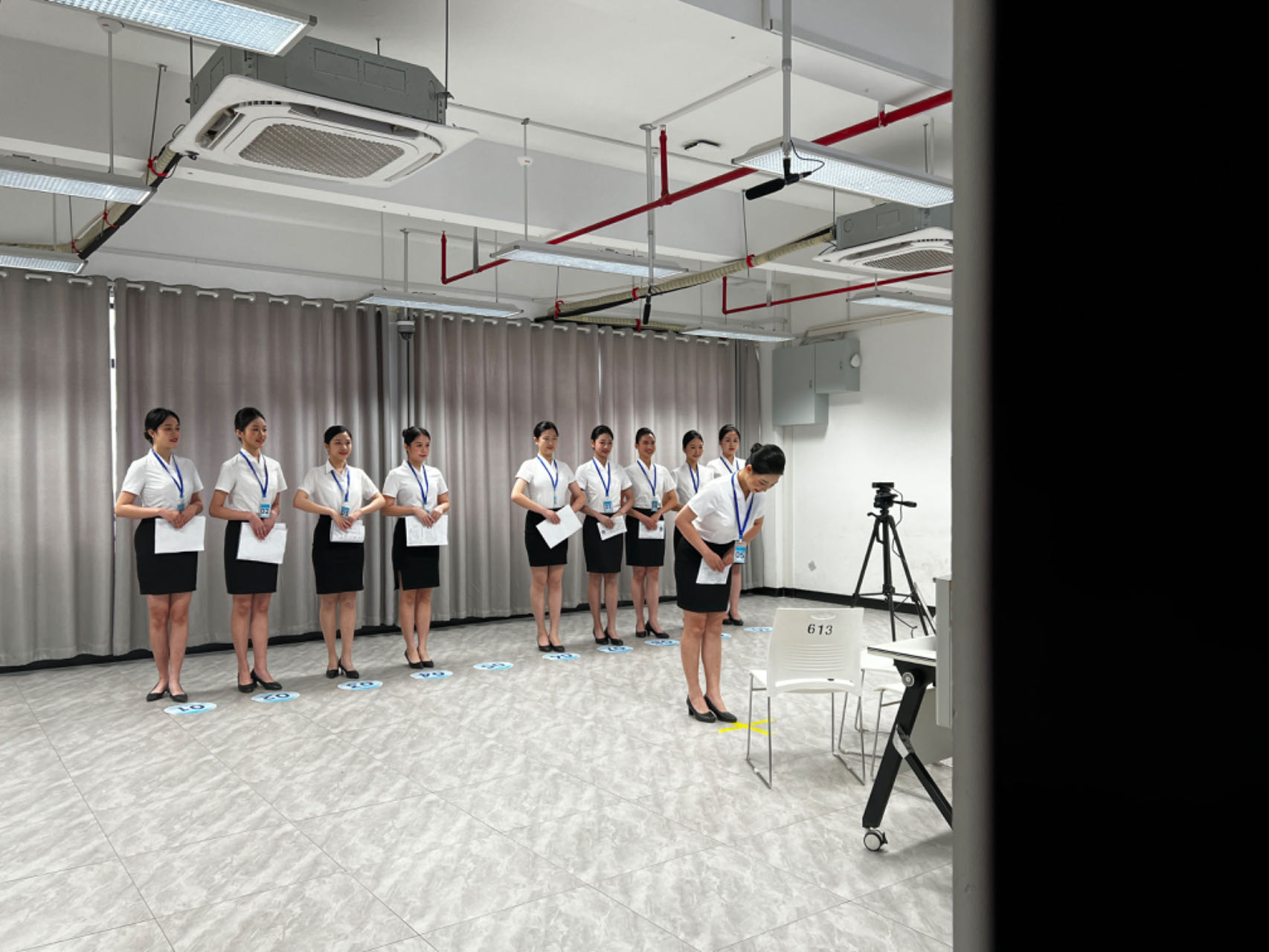 在招聘會(huì)現(xiàn)場,廈航總部面試專家和工作人員通過線上線下相結(jié)合的方式,對面試者基本條件、身體素質(zhì)、職業(yè)形象等進(jìn)行了綜合考評。我院學(xué)生以飽滿的精神狀態(tài)和過硬的專業(yè)素質(zhì),贏得了廈航招聘團(tuán)隊(duì)的充分肯定,多名同學(xué)成功通過此次形象篩選,拿到赴廈航總部終面的入場券。