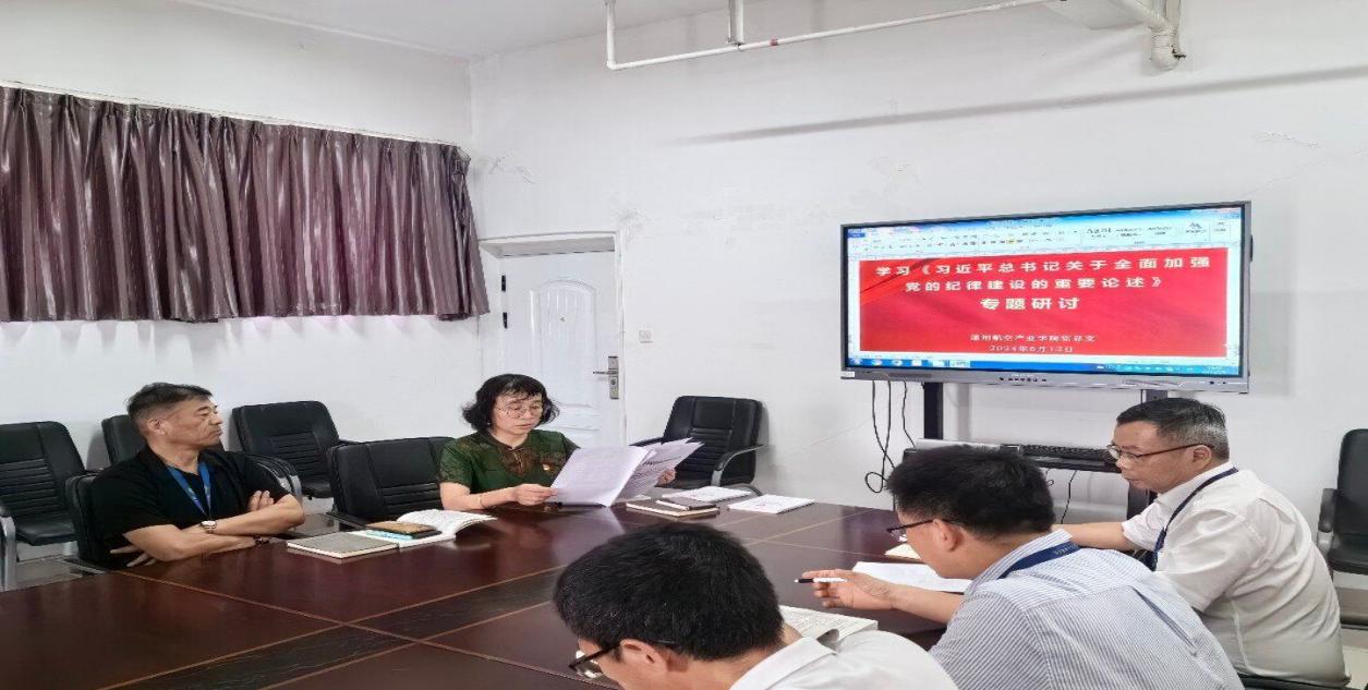 6月12日下午,學院黨總支理論學習中心組舉行集中學習暨黨紀學習教育集中研討,認真學習領(lǐng)會習近平總書記關(guān)于全面加強黨的紀律建設(shè)的重要論述,更加全面地理解和執(zhí)行黨的紀律,推動黨紀學習教育走深走實。學院黨總支副書記蘇漢美主持學習,學院黨政班子成員、全體黨員參加會議。
