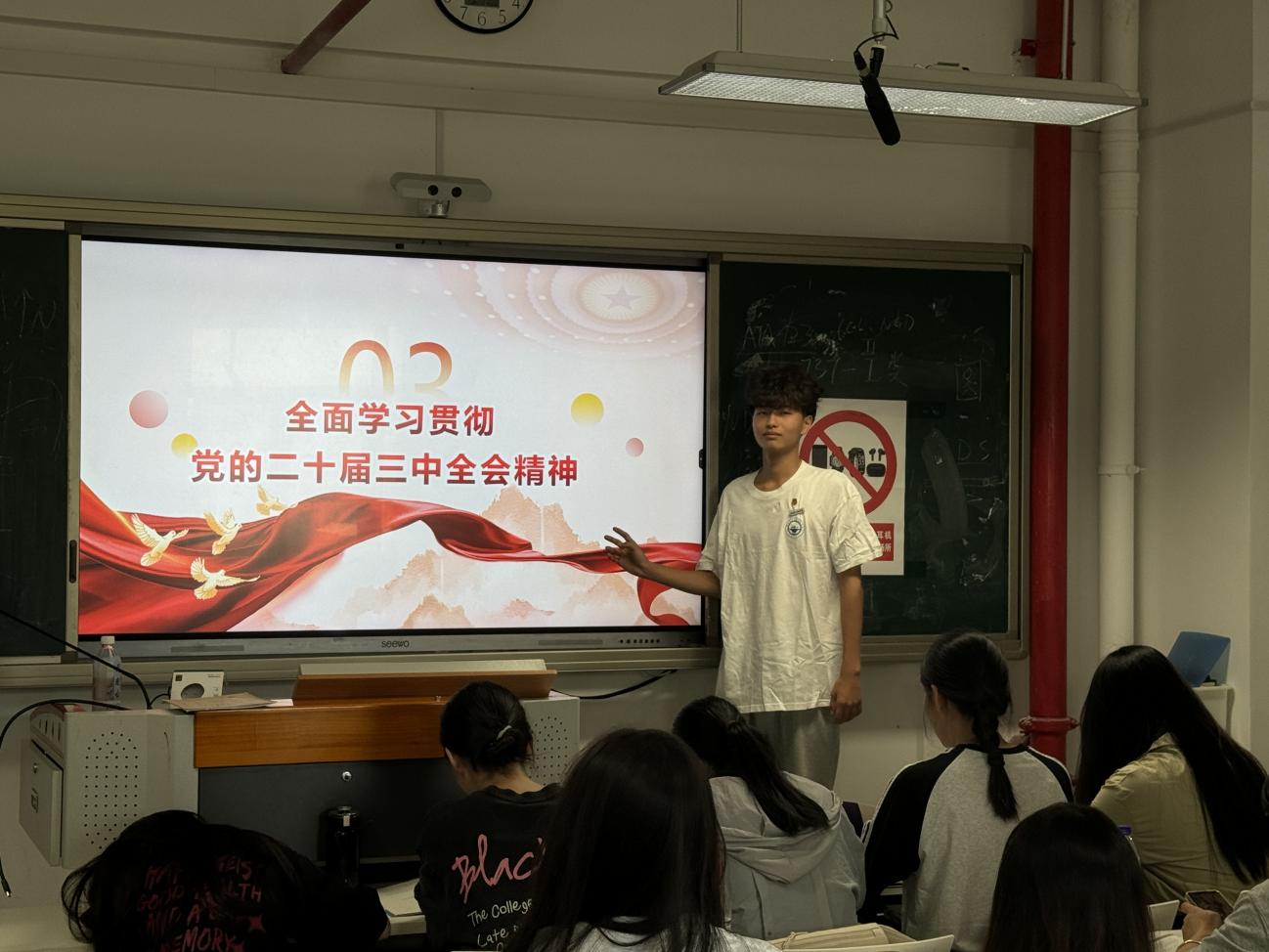 林欣妮同學(xué)告誡同學(xué)們無論是在學(xué)習(xí)中還是生活中,應(yīng)當(dāng)積極應(yīng)用黨的先進思想理念,認真學(xué)習(xí)黨的二十屆三中全會精神的內(nèi)涵、意義和要求,積極參加學(xué)校組織的相關(guān)學(xué)習(xí)活動、主題班會、講座等,通過學(xué)習(xí)不斷加深對會議精神的理解??梢岳谜n余時間閱讀相關(guān)的書籍、文章,關(guān)注官方媒體的解讀和報道,提升自己的政治理論素養(yǎng)。