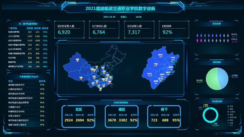 系統通過刷新生身份證將身份證信息、招生信息和預采集的信息數據進行比對,達到1秒精準識別、快速匹配核對、精準簽到、快速分流的效果。報到現場秩序井然,沒有任何擁擠現象,在上午10點至12點報到2000多人達到報到當天高峰時期,系統運行和網絡服務也流暢高速,體驗良好,極大提高了報到效率。截止上午11點23分全院已有3637人完成新生報到手續(xù),報到率超過50%,截止晚上18點,全院報到率已經超過90%。新生入校后,在校生志愿者積極主動為新生介紹報到流程和學院基本情況,引導新生了解校園環(huán)境,協助安頓住宿,讓新生感受到了船政大家庭的溫暖和船政青年的優(yōu)良素質。