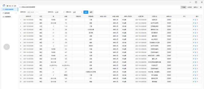 目前學校形成了以未來課堂、智慧教室、在線教學平臺、教室“有線+無線”專網為核心的全生態(tài)課堂教學環(huán)境,信息化建設從“數字化校園”階段邁進“智慧校園”階段。數字化校園環(huán)境,給師生的學習工作帶來巨大的便利,但是教室、會議室設備不斷更新,設備越來越復雜、越來越專業(yè),對于日常維護工作帶來很大的困難。針對教學工作中師生用戶反映校園數字化設備利用率不高,多媒體設備維護保障滯后,會議室技術支持能力不足等實際問題,學校數據中心按照公開招標等程序,2021年9月組建一支數字化教室及信息化設備維保專業(yè)服務團隊。團隊由7名工程師組成。服務內容包括全院180間數字化教室,以及5間會議室、1間學術報告廳、1間教學管理中心、1間虛擬演播室、行政辦公樓的電腦及學院各教學辦公樓網絡巡查與維護等。團隊通過構建嚴格的服務考核機制,建立可量化的任務和目標,結合每周每月日常任務、年度重點工作任務、提高服務質量。