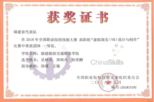 全國(guó)技術(shù)能手、省級(jí)高層次人才領(lǐng)銜教學(xué),團(tuán)隊(duì)教師100%持有高級(jí)職業(yè)技能證書,其中全國(guó)技能大賽優(yōu)秀指導(dǎo)教師3位,引入企業(yè)真實(shí)項(xiàng)目,打造“產(chǎn)教融合、工學(xué)一體”的實(shí)戰(zhàn)化課堂。團(tuán)隊(duì)師生連續(xù)多年獲得國(guó)家級(jí)獎(jiǎng)項(xiàng)30余項(xiàng)、省級(jí)獎(jiǎng)項(xiàng)20余項(xiàng),其中全國(guó)職業(yè)院校技能大賽高職組虛擬現(xiàn)實(shí)(VR)設(shè)計(jì)與制作一等獎(jiǎng)3項(xiàng),福建省職業(yè)院校技能大賽高職組中獲得一等獎(jiǎng)十余項(xiàng)。團(tuán)隊(duì)全程指導(dǎo),學(xué)生可參與國(guó)家級(jí)、省級(jí)VR設(shè)計(jì)大賽,積累作品集與行業(yè)認(rèn)可度。