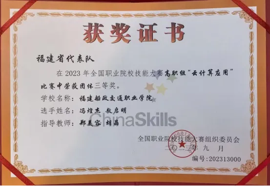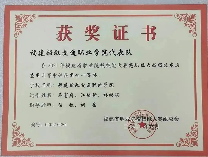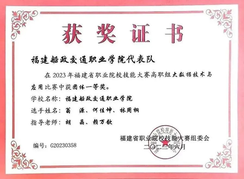 人才培養(yǎng)依托行業(yè)領(lǐng)軍企業(yè),結(jié)合智慧交通大數(shù)據(jù)、智慧海洋大數(shù)據(jù)等產(chǎn)業(yè)發(fā)展方向,注重“產(chǎn)教融合、課證融通、以賽促學(xué)”的教育理念,學(xué)生多次在世界職業(yè)院校技能大賽、全省職業(yè)院校技能競(jìng)賽、金磚國(guó)家技能發(fā)展與技術(shù)創(chuàng)新大賽、華為ICT大賽等專業(yè)相關(guān)賽項(xiàng)中榮獲一等獎(jiǎng)、二等獎(jiǎng)的好成績(jī)。