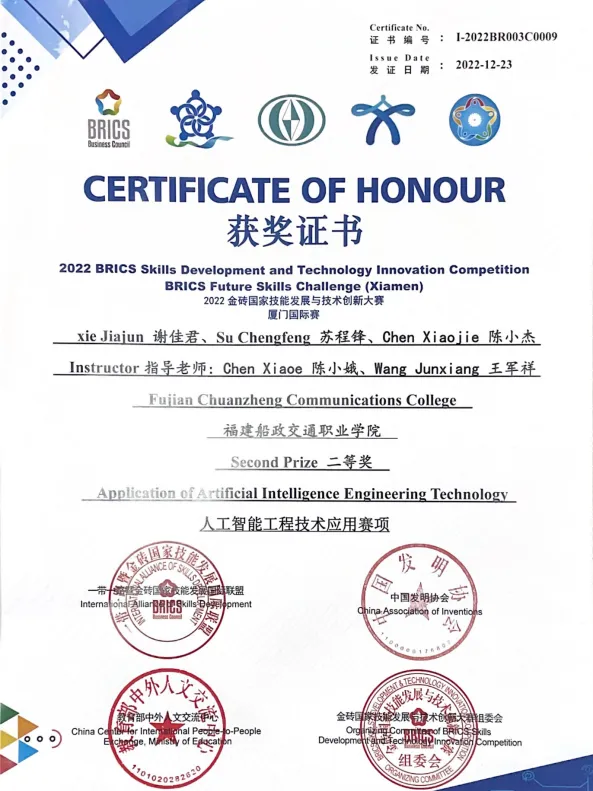 競(jìng)賽王者:學(xué)生斬獲中國(guó)國(guó)際“互聯(lián)網(wǎng)+”大賽國(guó)賽銀獎(jiǎng)、福建省職業(yè)技能競(jìng)賽“物聯(lián)網(wǎng)應(yīng)用開發(fā)”賽項(xiàng)一等獎(jiǎng)、“一帶一路”金磚國(guó)家技能大賽全國(guó)一等獎(jiǎng)等30余項(xiàng)高級(jí)別獎(jiǎng)項(xiàng),彰顯“以賽促學(xué)”的卓越成效。