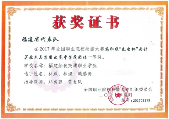本專業(yè)是國(guó)家現(xiàn)代學(xué)徒制試點(diǎn)專業(yè),專業(yè)教學(xué)團(tuán)隊(duì),教學(xué)實(shí)力強(qiáng),副教授以上職稱占75%,其中博士學(xué)歷教師1位,碩士學(xué)歷100%,高級(jí)工程師1位,海外訪問(wèn)學(xué)者1 位,“雙師型”教師100%,全國(guó)技能大賽優(yōu)秀指導(dǎo)教師4位,省級(jí)優(yōu)秀指導(dǎo)教師5位,校級(jí)教學(xué)名師1位,2023年福建省職業(yè)院校技能大賽教師教學(xué)能力大賽一等獎(jiǎng)3項(xiàng)。團(tuán)隊(duì)師生連續(xù)多年在“網(wǎng)絡(luò)系統(tǒng)建設(shè)運(yùn)維”、“計(jì)算機(jī)網(wǎng)絡(luò)應(yīng)用”、“5G全網(wǎng)建設(shè)”、“信息安全管理與評(píng)估”、“云計(jì)算”等賽項(xiàng)等賽項(xiàng)獲得國(guó)家級(jí)獎(jiǎng)項(xiàng)30余項(xiàng)、省級(jí)獎(jiǎng)項(xiàng)20余項(xiàng),其中全國(guó)職業(yè)院校技能大賽高職組中一等獎(jiǎng)3項(xiàng),二等獎(jiǎng)10余項(xiàng);福建省職業(yè)院校技能大賽高職組中獲得一等獎(jiǎng)20余項(xiàng)。
