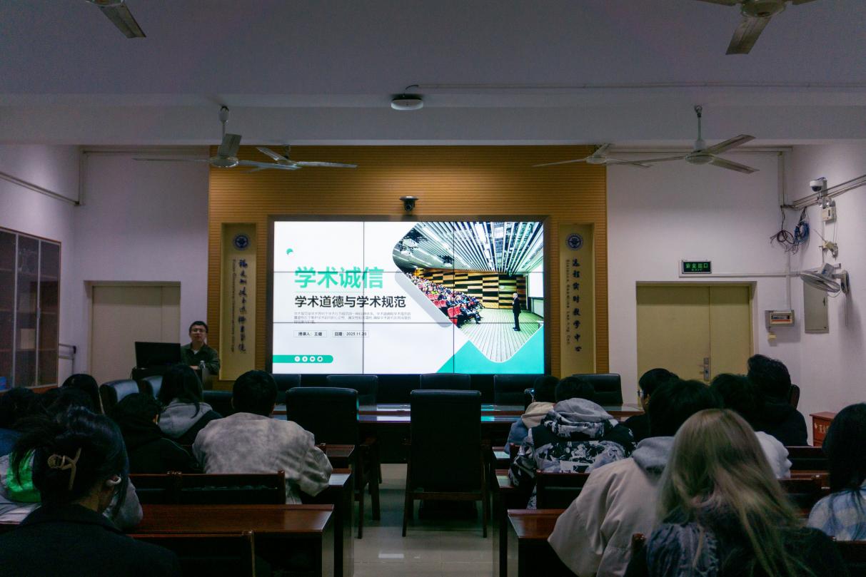 講座開始,王健老師引用《大學(xué)》經(jīng)典論述,結(jié)合多年教學(xué)與學(xué)術(shù)研究經(jīng)驗(yàn),深入闡釋學(xué)術(shù)誠信的核心內(nèi)涵。他強(qiáng)調(diào),學(xué)術(shù)誠信是治學(xué)的基本準(zhǔn)則,更是青年學(xué)生成長成才的立身之本,要求同學(xué)們?cè)趯W(xué)術(shù)活動(dòng)中堅(jiān)守誠信底線,恪守規(guī)范要求,自覺抵制不良學(xué)術(shù)風(fēng)氣。