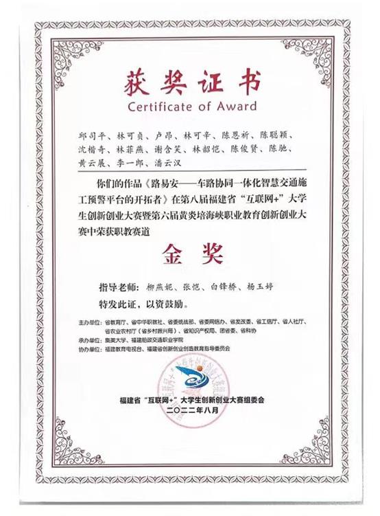 本專業(yè)學(xué)生多次在全國職業(yè)院校技能競賽中榮獲一、二等獎(jiǎng)等優(yōu)異成績,2017年來共獲得國賽一等獎(jiǎng)2次,二等獎(jiǎng)2次,省賽一等獎(jiǎng)6次,二等獎(jiǎng)1次。并多次在“互聯(lián)網(wǎng)+”創(chuàng)新創(chuàng)業(yè)競賽中獲得省賽金獎(jiǎng)、銀獎(jiǎng)。專業(yè)建設(shè)勁頭充足,凸顯內(nèi)涵建設(shè),與福州康馳新巴士有限公司、霧實(shí)(福建)科技有限公司等多家企業(yè)建立了長期穩(wěn)定的校企合作關(guān)系。