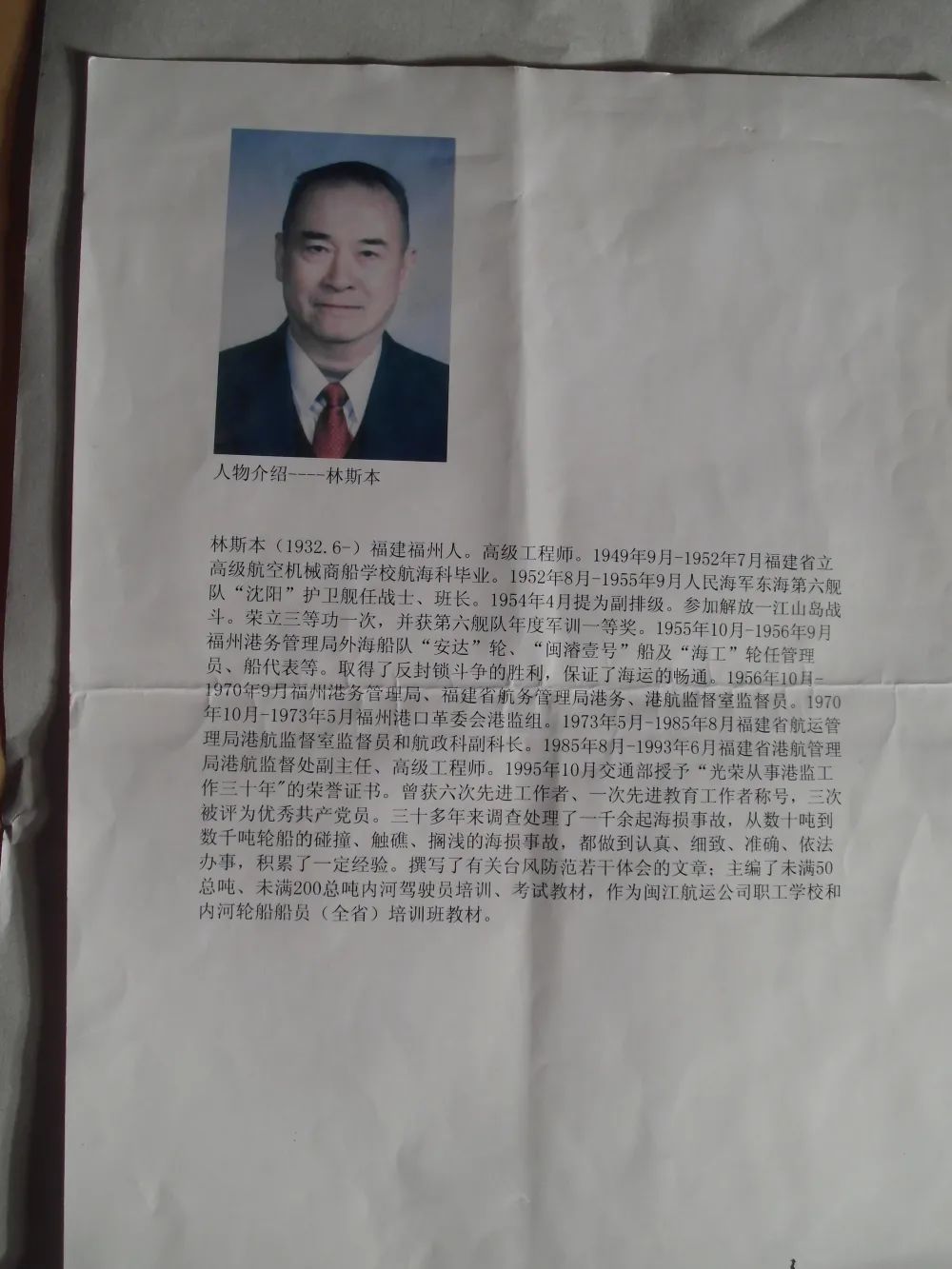 林斯本,1949年9月-1952年7月福建省高級航空機(jī)械 、商船學(xué)校航??飘厴I(yè)。