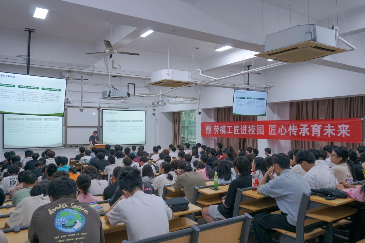 為響應(yīng)2025年全國職業(yè)教育活動周“一技在手 一生無憂”的號召,弘揚勞模精神與工匠文化,校友會土木工程專業(yè)委員會積極搭建校友與母校聯(lián)動平臺,近日特邀2006屆道路與橋梁工程技術(shù)專業(yè)優(yōu)秀校友、福建省勞動模范、寧德交投置業(yè)公司成本合約部經(jīng)理賴盛君返校,在創(chuàng)新樓102教室開展“勞模工匠進校園,匠心傳承育未來”主題講座。本次活動作為職教周特色活動之一,吸引了140余名師生參與,現(xiàn)場反響熱烈。