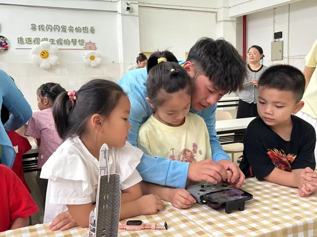 鄉(xiāng)村振興,教育筑基?!八{(lán)天禮儀志愿服務(wù)隊(duì)”深知,航空夢(mèng)的種子,要在童年土壤里早早播撒。隊(duì)員們提前籌備,將已學(xué)到的航空知識(shí)整理為童趣故事;精心挑選安全且可拆解的航空模型拼圖,反復(fù)調(diào)試無(wú)人機(jī)飛行方案,只為給孩子們最生動(dòng)的航空課堂。