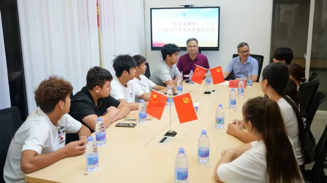 在“一站式”學(xué)生社區(qū)服務(wù)中心,學(xué)院黨委書記陳宜大,與留校的新生代表、少數(shù)民族學(xué)生代表、家庭困難學(xué)生們,共話成長(zhǎng)、同度國(guó)慶、中秋佳節(jié)。學(xué)院黨委學(xué)生工作部、后勤管理處、土木工程學(xué)院、安全與環(huán)境學(xué)院等相關(guān)職能部門和二級(jí)學(xué)院領(lǐng)導(dǎo)參加座談。