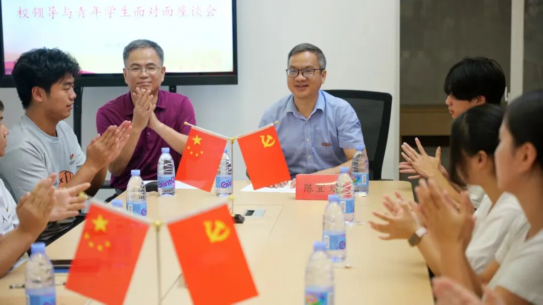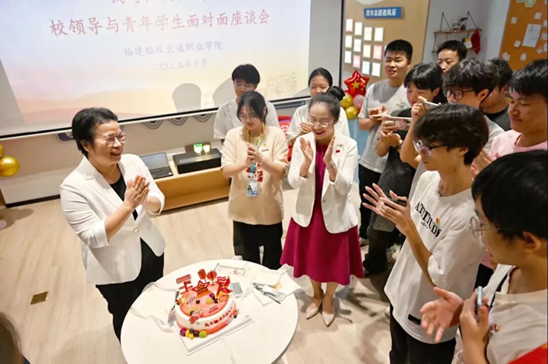 在青年之家,同學(xué)們圍繞專業(yè)發(fā)展、擇業(yè)方向、個(gè)人規(guī)劃及校園生活等話題踴躍發(fā)言;學(xué)院黨委副書記張輝與學(xué)院團(tuán)委書記陳慧認(rèn)真傾聽,對(duì)同學(xué)們提出的困惑逐一進(jìn)行詳細(xì)解答并開展深入交流。座談會(huì)上,張輝副書記與師生們共同為新中國(guó)成立76周年慶生,師生們高聲祝?!白鎳?guó)生日快樂(lè)”,現(xiàn)場(chǎng)氣氛高漲,溫馨的一幕為座談會(huì)畫上了圓滿的句號(hào)。