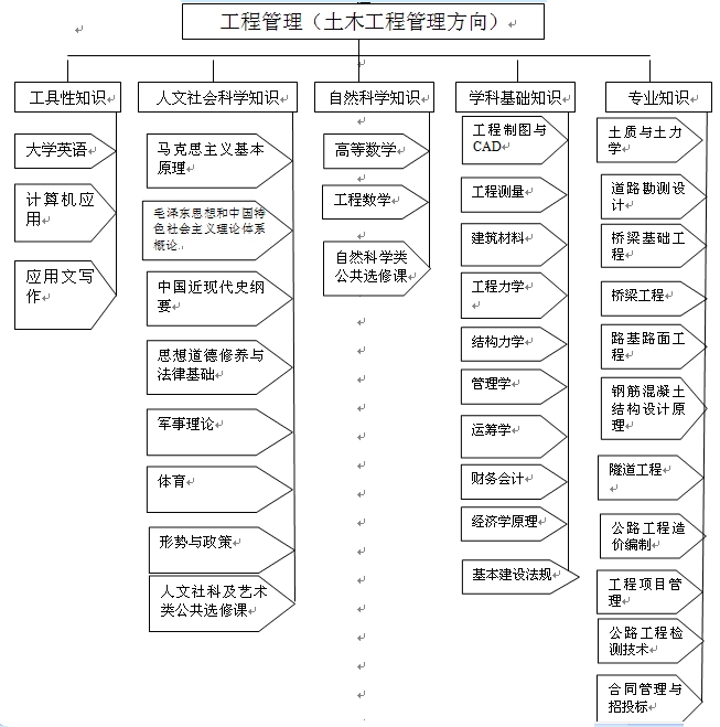 【培養(yǎng)目標】本專業(yè)培養(yǎng)德智體全面發(fā)展,適應土木工程建設(shè)技術(shù)與管理服務的需要,掌握與工程管理相關(guān)的土木工程技術(shù)、管理、經(jīng)濟和法律等基本知識,具備系統(tǒng)性、開放性的專業(yè)知識結(jié)構(gòu),獲得建造師、監(jiān)理工程師、試驗檢測工程師、工程造價師等所需的基礎(chǔ)知識,懂工程經(jīng)濟、善工程管理、會工程技術(shù)、實踐能力強、綜合素質(zhì)高、富有創(chuàng)新精神和創(chuàng)業(yè)能力的復合性應用型高級專門人才。畢業(yè)生能夠綜合運用土木工程技術(shù)與管理科學的理論與方法,在交通、建筑行業(yè)的施工、試驗檢測、監(jiān)理咨詢企業(yè)以及政府行業(yè)管理部門從事土木工程建設(shè)管理和工程技術(shù)服務工作。