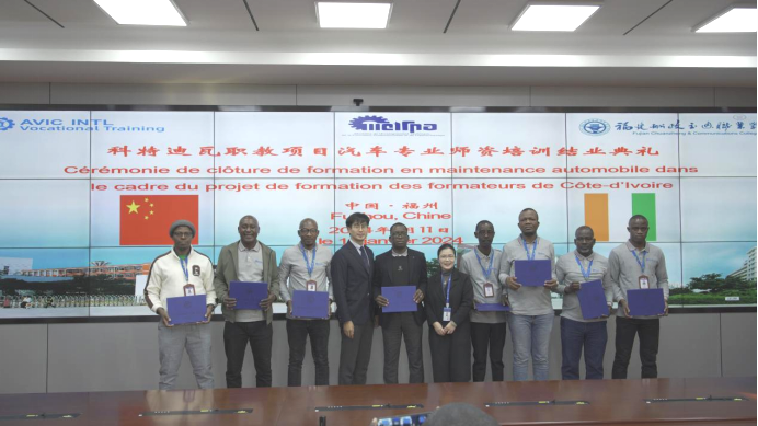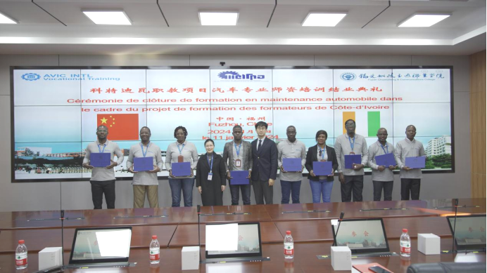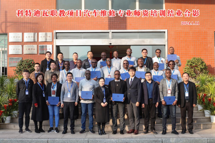 近日,我院舉辦科特迪瓦職教項目汽車維修專業(yè)師資培訓(xùn)結(jié)業(yè)典禮??铺氐贤呗毥添椖慷綄W科菲·古阿古·荷內(nèi),學院黨委委員、副院長陳艷紅,中航國際成套設(shè)備有限公司業(yè)務(wù)四部經(jīng)理助理張航出席典禮,學院教務(wù)處、科技處、對外交流中心及汽車學院等部門負責人參加典禮。