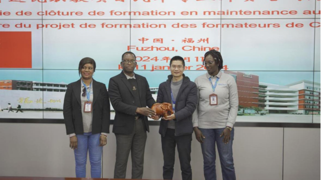 會上,陳艷紅副院長以及張航經(jīng)理向科特迪瓦學員頒發(fā)了結(jié)業(yè)證書并留影,科特迪瓦職教項目督學科菲·古阿古·荷內(nèi)向汽車學院贈送了禮物表示感謝。