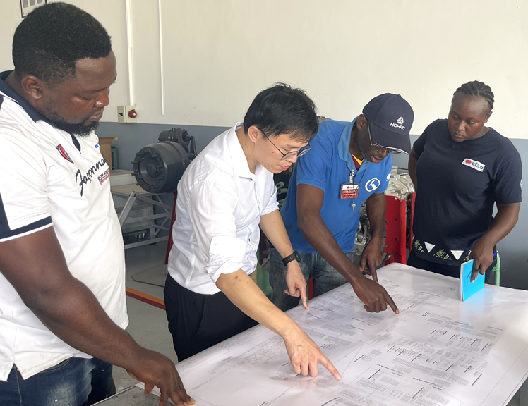 在喀麥隆期間,汽車學(xué)院教師團隊林金海、梁霖鋒等老師將因地制宜,為喀麥隆當(dāng)?shù)貑T工開展為期3天的汽車維修理技能培訓(xùn)和職業(yè)教育,本次培訓(xùn)車型主要為金龍客車的燃油車型,未來還將進行新能源汽車、智能網(wǎng)聯(lián)汽車等理論培訓(xùn)、實操培訓(xùn),并指導(dǎo)當(dāng)?shù)嘏嘤?xùn)中心開展實訓(xùn)基地建設(shè)。本次的培訓(xùn)成果將推廣至廈門金龍在非洲地區(qū)的所有經(jīng)銷商員工??溌 昂=z學(xué)院”的成立對CFAO公司進一步深化國際合作,鞏固并擴大競爭優(yōu)勢具有重要意義。同時,我院也期待與各方共同探索更多合作領(lǐng)域,共同推動中非友好合作和“一帶一路”建設(shè)不斷向前發(fā)展。
