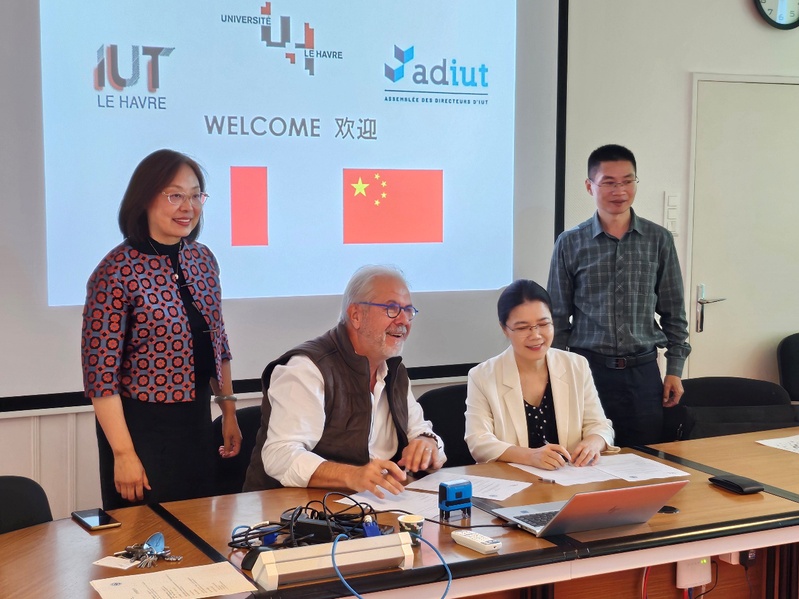 代表團(tuán)與諾曼底勒阿弗爾大學(xué)校長佩德羅·拉格什·多斯桑托斯Pedro Lages dos Santos及國際發(fā)展部負(fù)責(zé)人蒂埃里·塔貝利翁Thierry TABELLION等舉行會(huì)談,雙方就師生互訪、教科研合作,特別在港口與海洋產(chǎn)業(yè)人才培養(yǎng)合作方面達(dá)成共識,并簽署校際合作備忘錄。